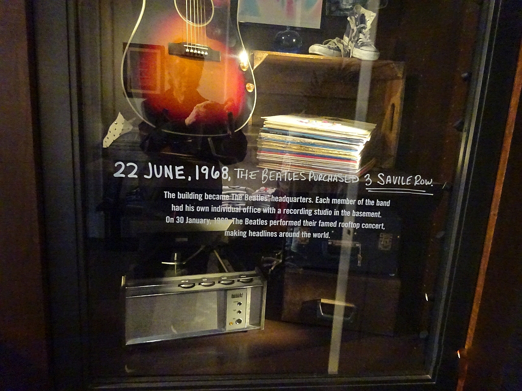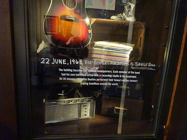 On my first trip to England over 40 years ago the big thrill for me was getting to go into the Beatles Apple Records. At that time a friend of mine hung with the Apple scruffs and it was thanks to her that my first night in London (back then you flew over during the day and arrived in evening) we were able to go into Apple Records as she was friends with the Guard nicknnamed Sarge so we got a very late tour inside, except the rooftop. It was such a thrill for me and and awesome beginning to a very wonderful Beatles trip. Trying to meet them was why I first went to London and happily succeeded. Of course Apple Records closed down a number of years ago and has since become Abercrombie & Finch Kid's store. I discovered of late you can go in the store which displays some Beatles artifacts. So needless to say I decided to visit the store. I was able to take some photos and tried to recall what was where so long ago. Of course you could not go up to the roof in 1971, where the Beatles gave their final concert. Of course not today although I did go across to Abercrombie & Finch and up a few floors to gaze above. It brought back so many memories.